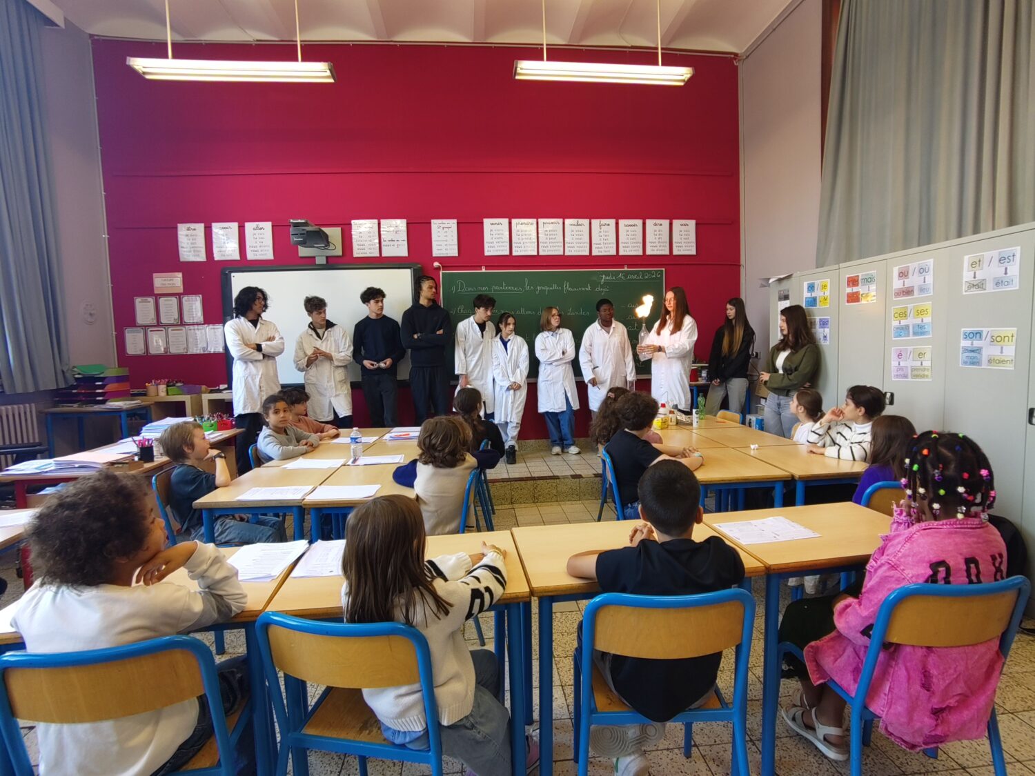 Les élèves de l’atelier Sciences on réalisé des démonstrations d’expériences scientifiques dans les écoles communales fondamentales du jardin botanique et de Waha primaire. Ils ont été super bien reçus par des élèves de la 3e à la 6e primaire et ils ont pu montrer et expliquer plein d’expériences tout en partageant un moment amusant avec des plus jeunes.